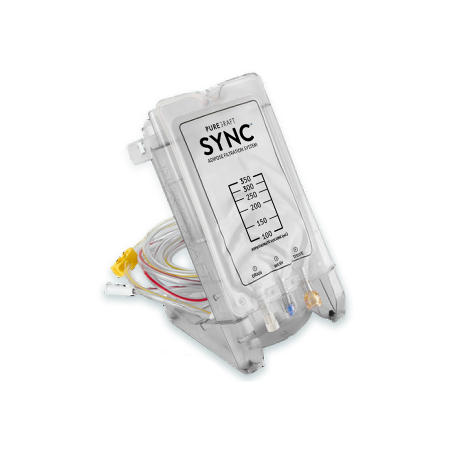 The Puregraft SYNC system is a single-use, disposable device designed to streamline fat processing by offering a rapid and efficient method for fat graft preparation. Leveraging patented, advanced filtration technology, SYNC optimizes workflow and enhances convenience for medical professionals, delivering high-quality fat with minimal waste. Its intuitive design ensures simplicity and speed without compromising performance, making it an essential addition to modern fat grafting procedures.